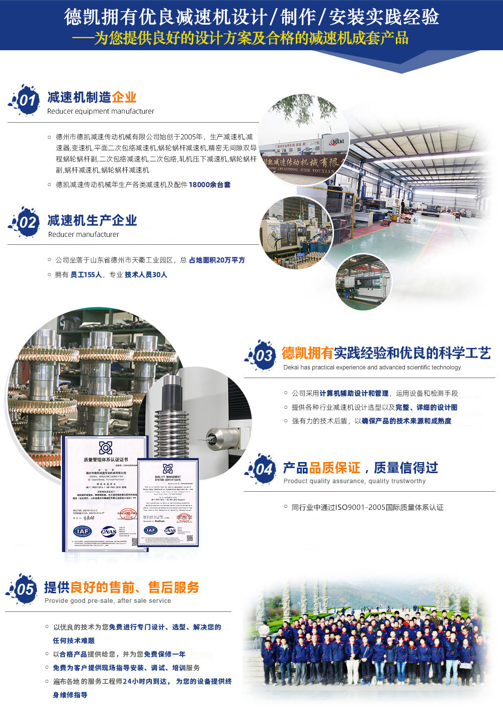 德州市德凱減速傳動(dòng)機(jī)械有限公司,生產(chǎn)減速機(jī),減速器,變速機(jī),平面二次包絡(luò)減速機(jī),蝸輪蝸桿減速機(jī),精密無間隙雙導(dǎo)程蝸輪蝸桿副,二次包絡(luò)減速機(jī),蝸輪蝸桿,軋機(jī)壓下減速機(jī),蝸輪蝸桿副,蝸桿減速機(jī),蝸輪蝸桿減速機(jī),公司占地面積20萬平方,員工155人,技術(shù)人員30人,年生產(chǎn)各類減速機(jī)及配件18000余臺套。在同行業(yè)中通過了ISO9001質(zhì)量管理體系認(rèn)證。公司設(shè)備齊全、技術(shù)力量強(qiáng)大、檢測手段完善,引進(jìn)國外大型數(shù)控二次包絡(luò)機(jī)床GJK75加工數(shù)控4臺,可加工到800二次包絡(luò)蝸輪蝸桿。引進(jìn)漢江S7732蝸桿磨床3臺,精度可達(dá)5級。公司擁有輝光離子氮化爐4臺,經(jīng)該設(shè)備氮化后可提高蝸桿表面硬度、耐磨性高、提高疲勞強(qiáng)度、變形量小、耐蝕性、...